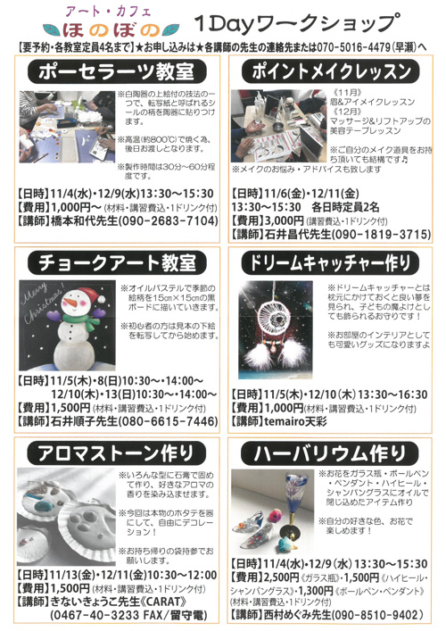アートカフェほのぼの11月・12月開催のご案内|茅ヶ崎市・藤沢市の一戸建てや不動産のことなら有限会社ライフネット湘南