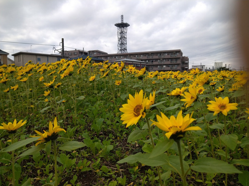 まず、寒川東中学校南側にあるヒマワリを見に行きました。