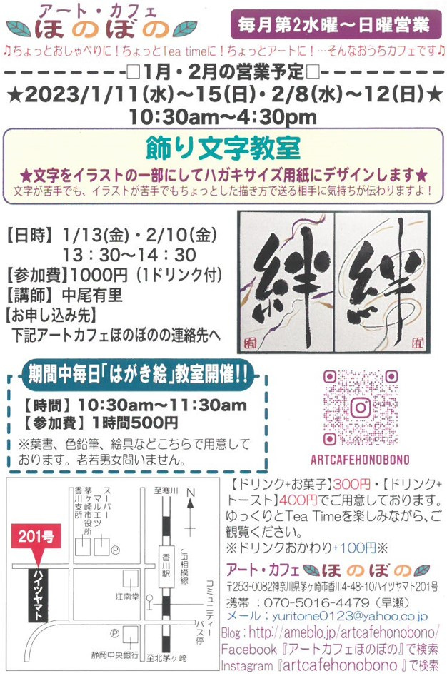 今年初のアートカフェほのぼののお知らせです。