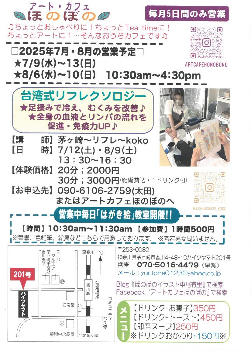 7月アートカフェほのぼののお知らせ|茅ヶ崎市・藤沢市の一戸建てや不動産のことなら有限会社ライフネット湘南